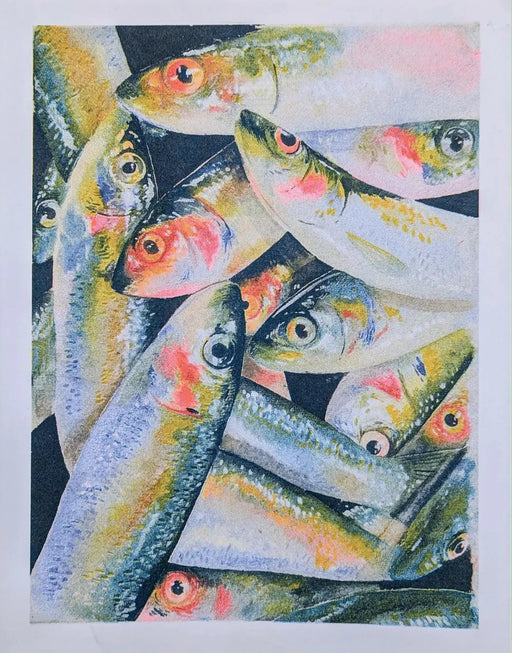 Christina HuWatercolour Sardine Fish PileRisograph print8.5" x 11"